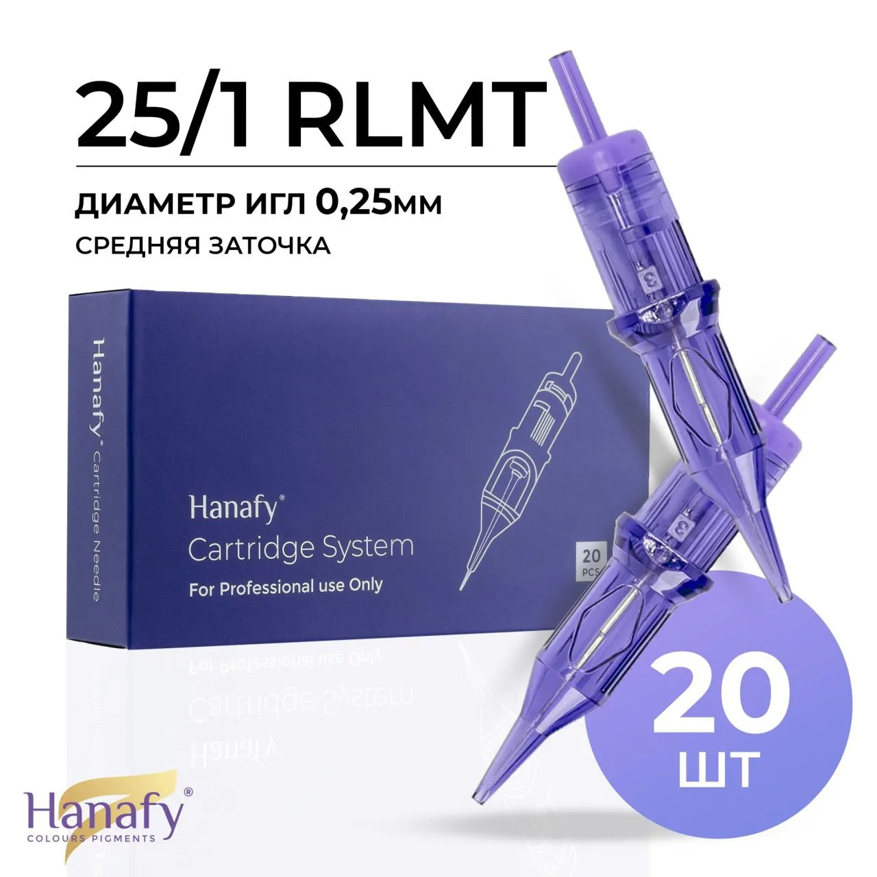 25/1 RLMT — картридж с одной иглой средней заточки. Благодаря малому диаметру иглы можно делать тонкие и изящные линии.